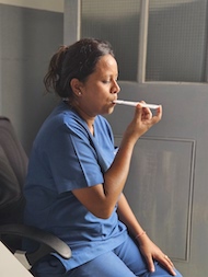 If you're scheduled for a UBT, you'll need to fast for at least 4 hours and avoid antacids or proton pump inhibitors for 2 weeks beforehand. During the test, you'll swallow a harmless tablet containing a special carbon radioisotope. If H. pylori is present, it will break down the carbon in the tablet, which we'll detect in your breath.